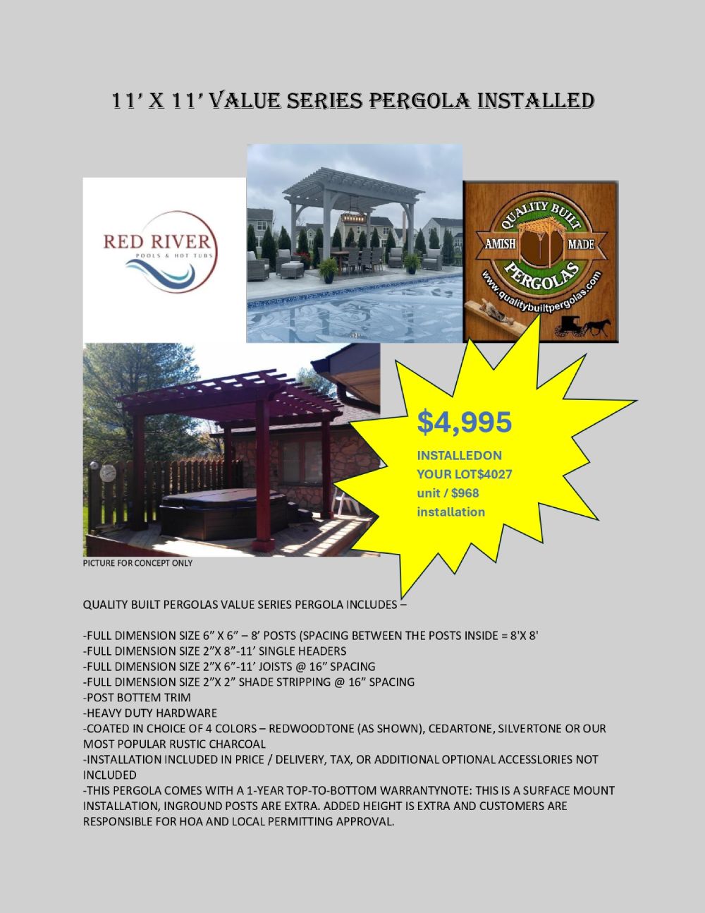 At Red River Pools, we believe a backyard should be more than just a place to swim—it should be a complete outdoor living space designed for comfort, beauty, and lasting enjoyment. That’s why we are proud to partner with Quality Built Pergolas, a trusted local company known for crafting high-quality pergolas and pavilions that perfectly complement your pool and outdoor lifestyle.